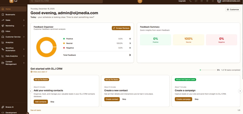 With sentiment analysis and feedback tracking, OLJ Media CRM helps you see beyond numbers and understand real customer experiences.