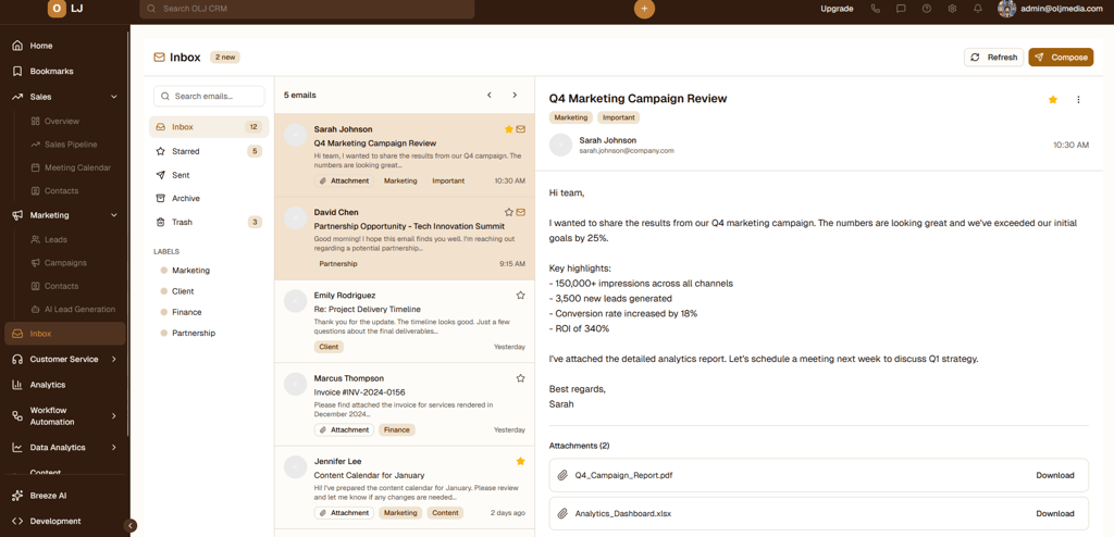 One of the most enjoyable features of OLJ Media CRM is its unified inbox.