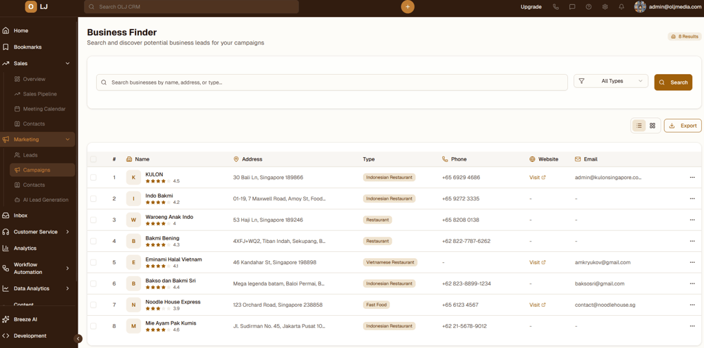 Discover how OLJ Media CRM helps businesses in Singapore manage leads, sales, customers, campaigns, inbox and support in one powerful platform. Work smarter, grow faster.
